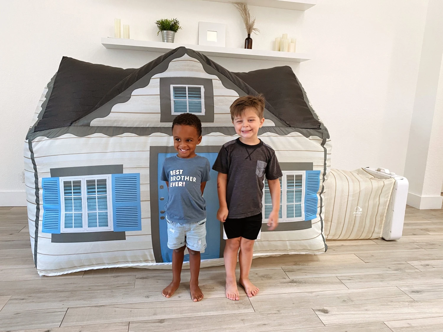 While you might feel bigger than life in your AirFort, it’s the perfect size. At 77” wide and 50” tall, AirFort is a perfect fit for a handful of little munchkins or a couple of grown fort enthusiast. Big enough for playdates, movie nights, and even slumber parties, AirFort is still small enough to fit in any standard sized room!