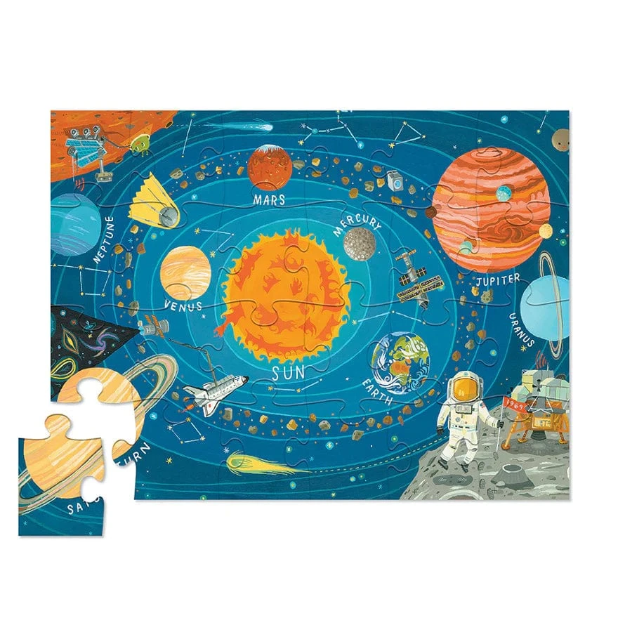 Blast Off!!! Blast off into the far reaches of the galaxy with our 24 piece Solar System floor puzzle! With its captivating illustrations and bold colors, this puzzle is the ultimate journey through the cosmos for budding space explorers.