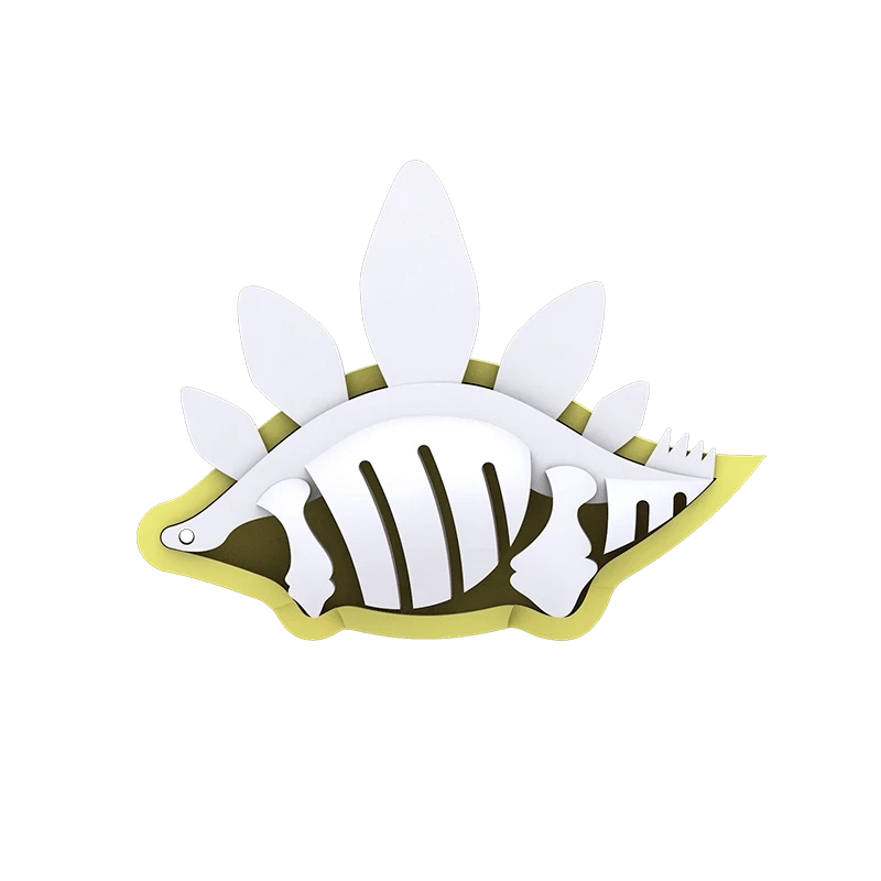 The stegosaurus lived about 145 million years ago during the jurassic era, weighing about 14,000 pounds. It is said they used their heavy tails as a defense mechanism from lurking predators. As a halftoy, you can open its magnetic shell to find the skeleton, a 3-piece bone puzzle. Each animal figure comes with a diorama that can be linked to other dioramas in the half dino collection. Collect them all and build a scenic dino world!