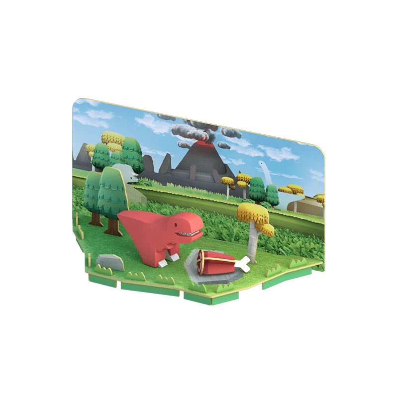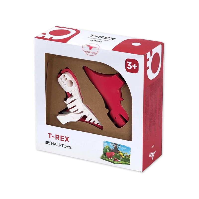 Known as the king of the lizards, this carnivore stretched up to 40 feet long and 12 feet tall. Did you know it is said that this predator had a life expectancy of 28 years? As a halftoy, you can open its magnetic shell to find the skeleton, a 4-piece bone puzzle. Each animal figure comes with a diorama that can be linked to other dioramas in the half dino collection. Collect them all and build a scenic dino world!
