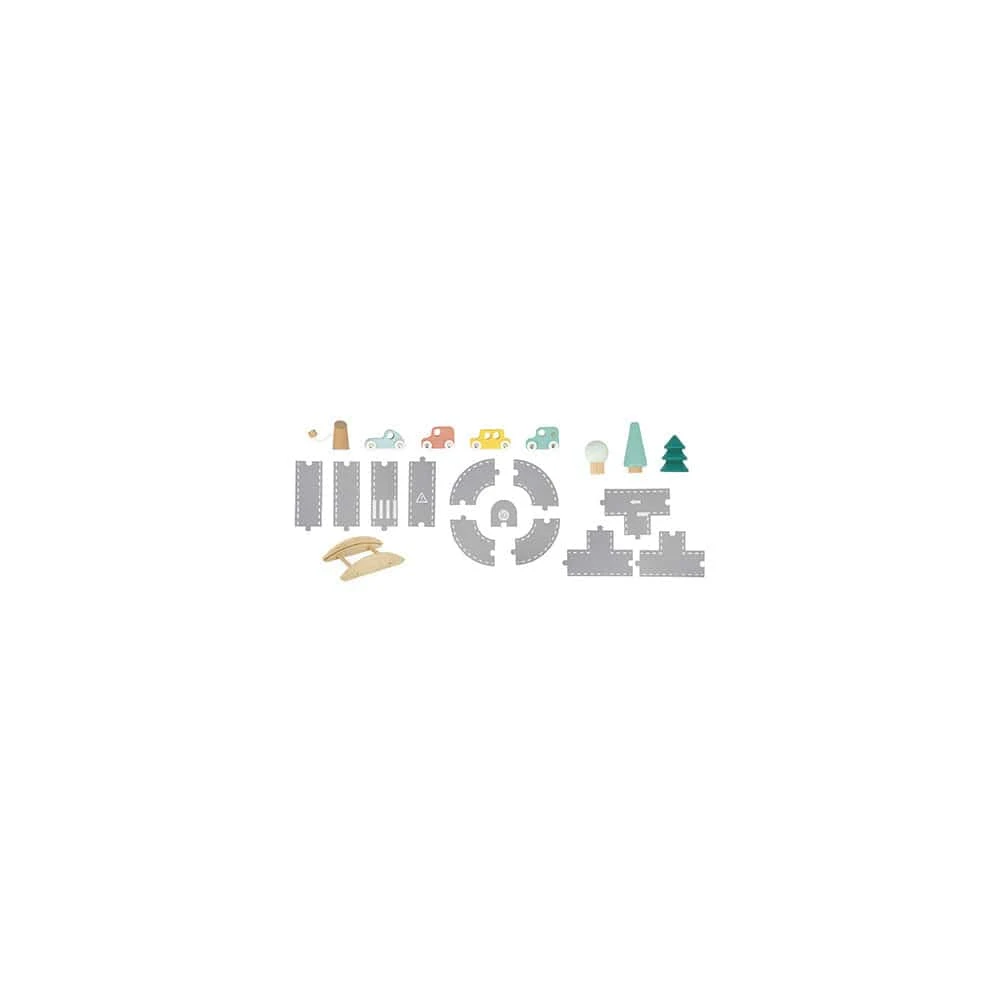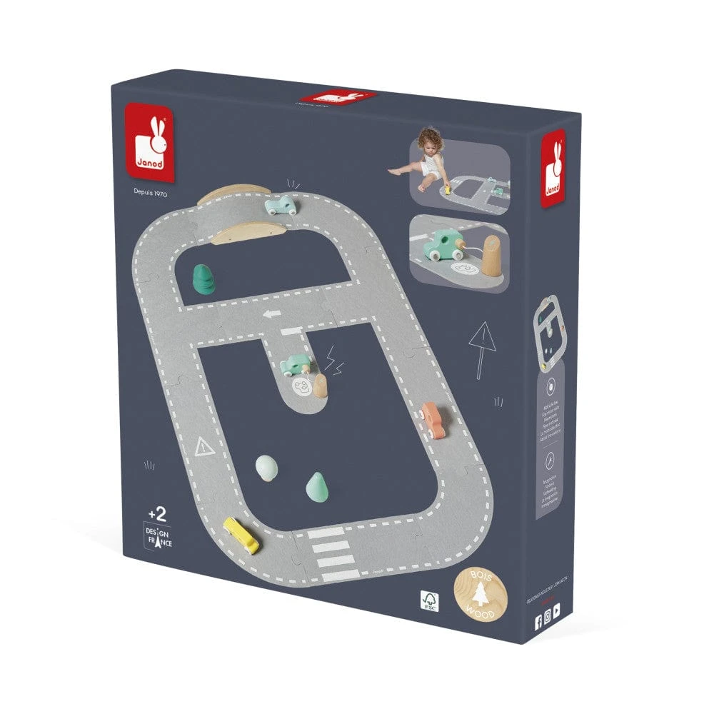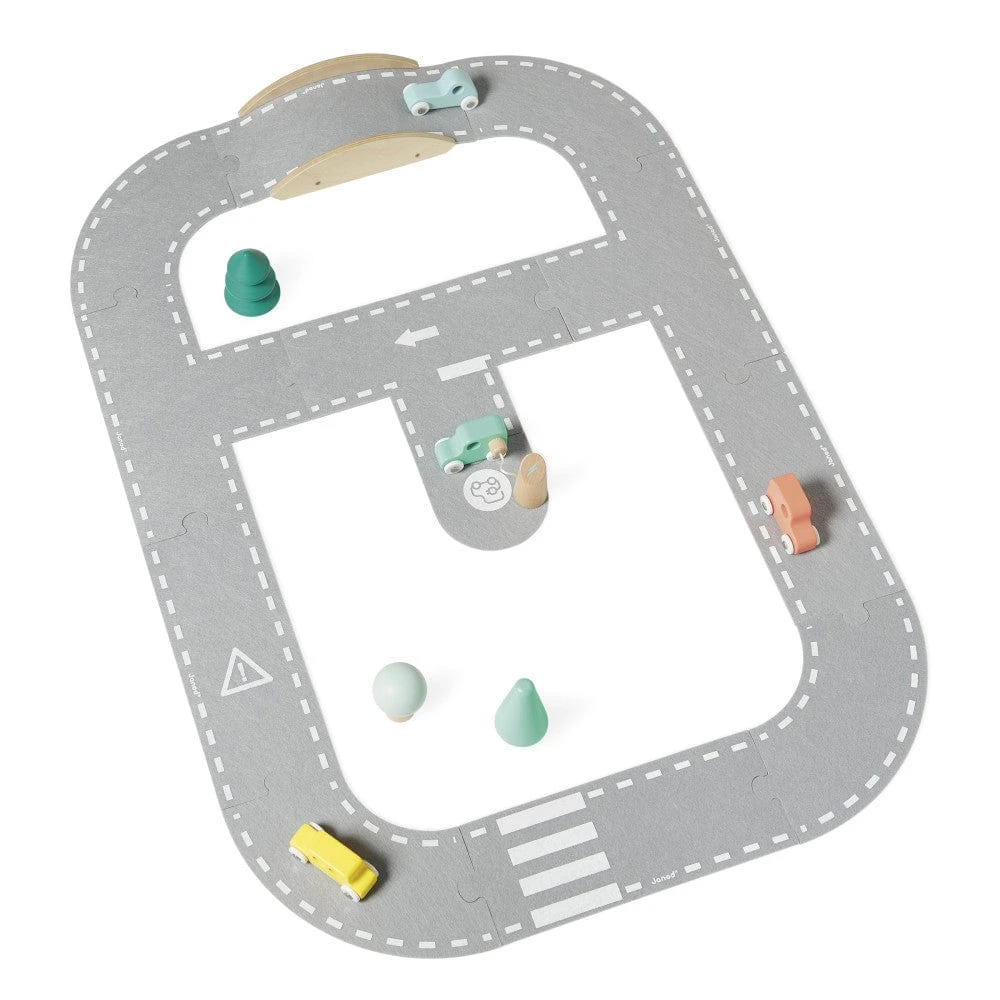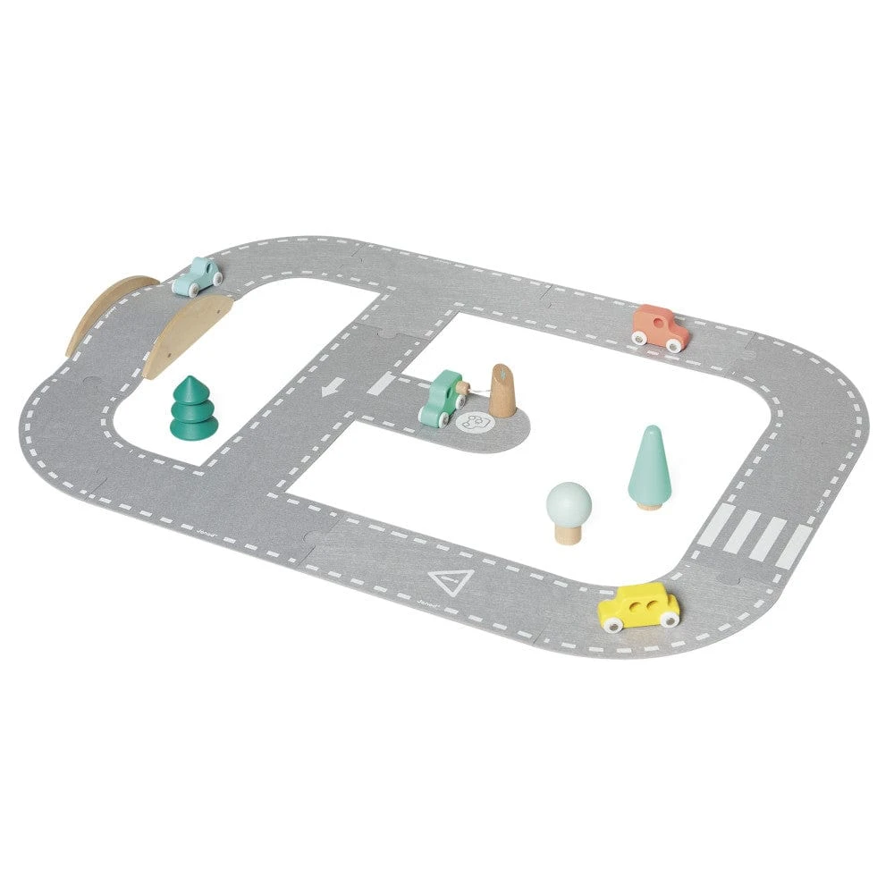 Vroom Vroom!: Drive the wooden cars around the felt road. Promotes creativity and dexterity for toddlers and preschoolers ages 2 and up. Includes 4 wooden automobiles, 3 trees, 1 charging station, 1 bridge, and 12 felted road pieces.