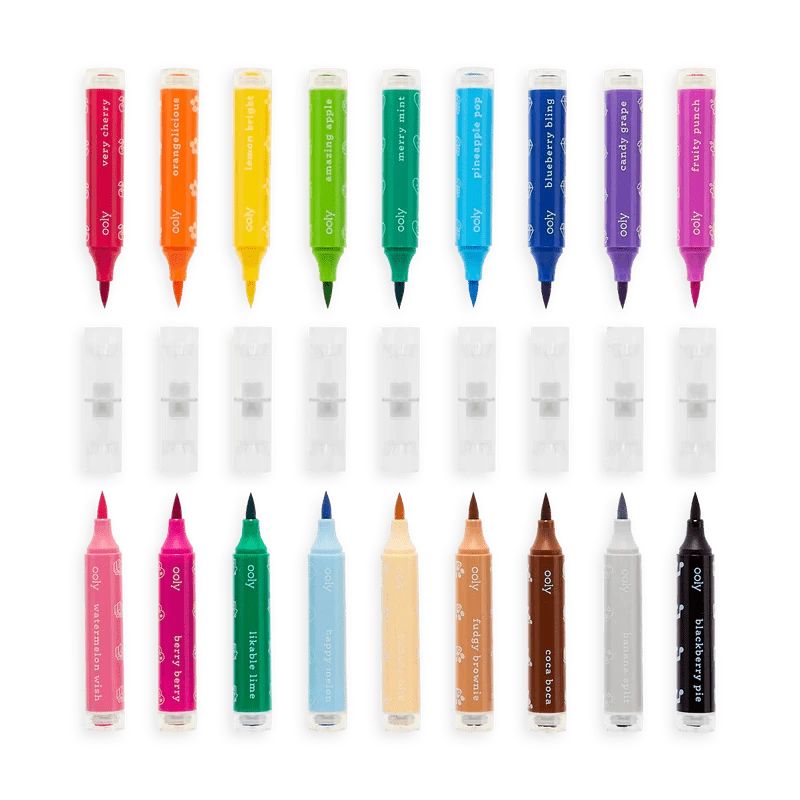 Stampables Scented Double-Ended Stamp Markers provide hours of creative play with 18 unique colors, designs, and scents. The double-ended markers feature a brush tip on one end and a stamp on the other, and are washable and reusable.